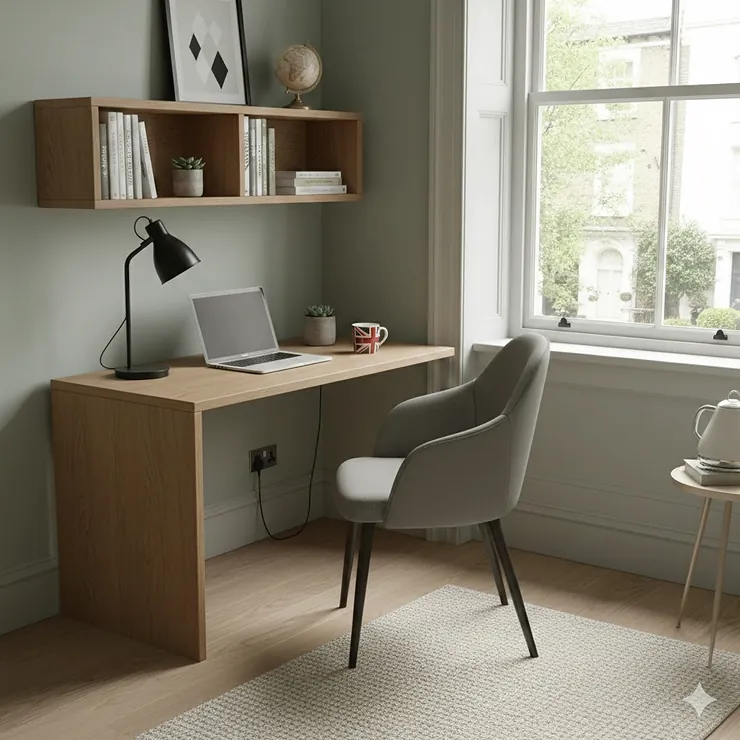 Radiator Positioning: Never block radiators completely – British winters demand functional heating. Leave at least 10 cm clearance. Consider desks with open backs that allow heat circulation.